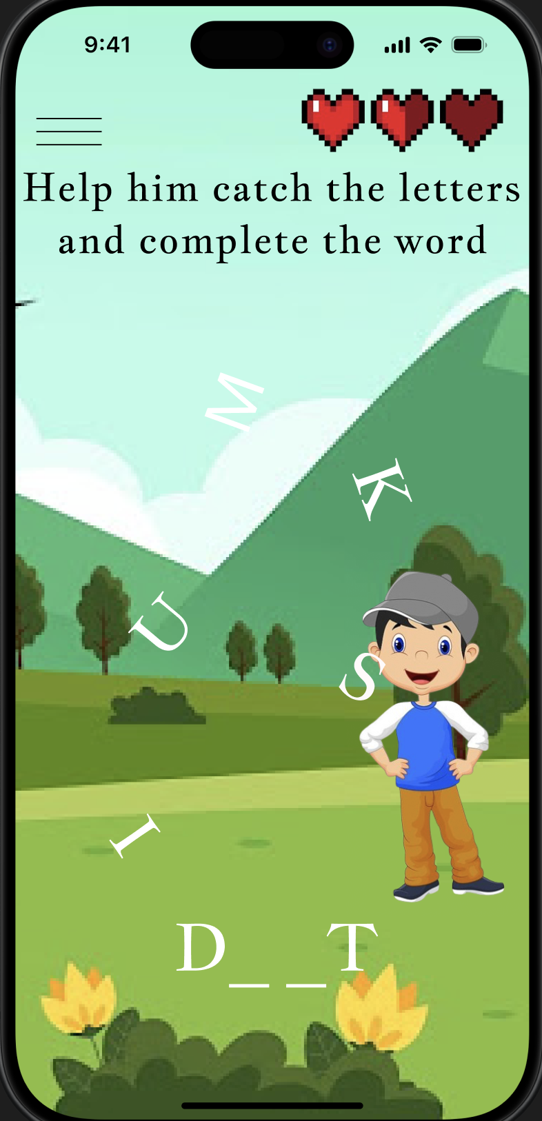 Guide the character to catch the falling letters. You need to collect the right letters to form the correct word. Be careful, as missing letters or picking the wrong ones could cost you lives!